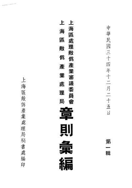名称:《上海区处理敌伪产业审议委员会上海区敌伪产业处理局章则汇编_第1辑》电子版合集