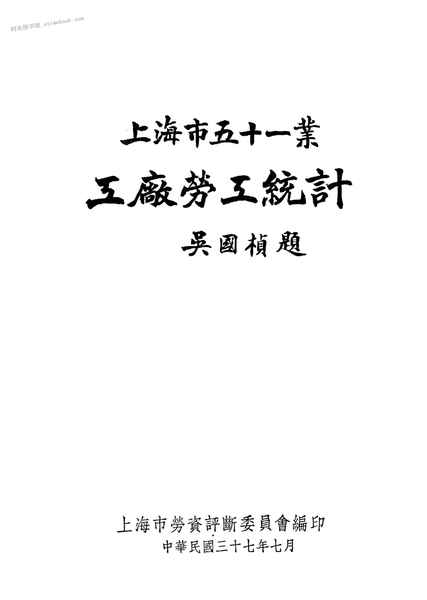 | 网盘路径:/时光图书馆珍藏系列/书籍文件/老图书/《上海市五十一业工厂劳工统计》电子版合集.db | ||