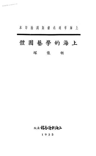 | 网盘路径:/时光图书馆珍藏系列/书籍文件/老图书/《上海的学艺团体》电子版合集.db | ||