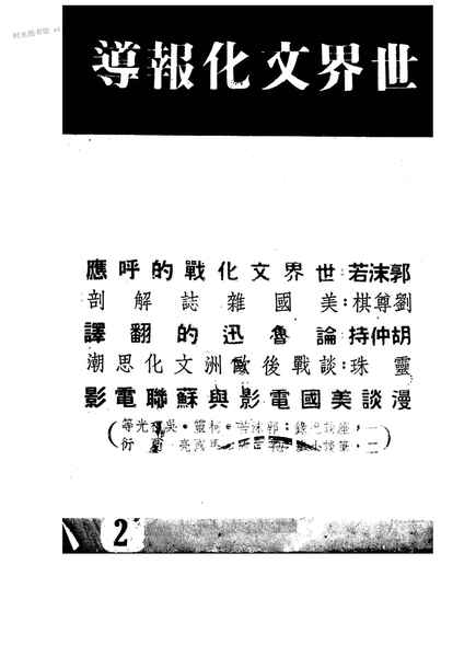 | 网盘路径:/时光图书馆珍藏系列/书籍文件/老图书/《世界文化报导》电子版合集.db | ||