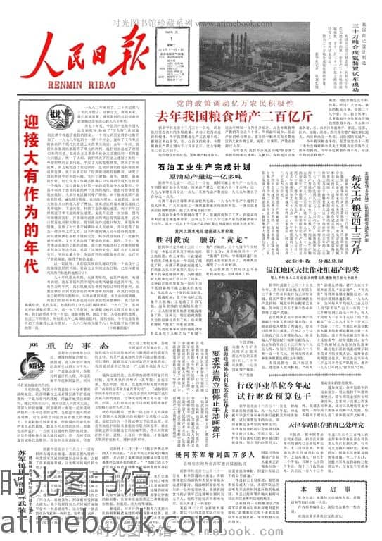 | 网盘路径:/时光图书馆珍藏系列/书籍文件/老报纸/《人民日报》1946-2021/《人民日报》1980年高清影印版_带检索.db | ||