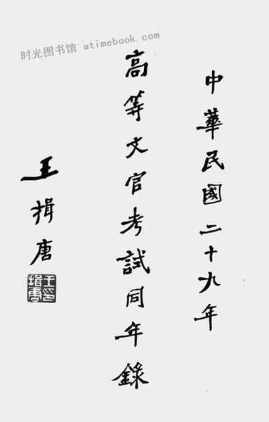 网盘路径:/时光图书馆珍藏系列/书籍文件/老图书/《中华民国二十九年_高等文官考试同年录》电子版合集.db