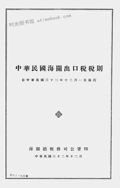 | 网盘路径:/时光图书馆珍藏系列/书籍文件/老图书/《中华民国海关出口税税则(自中华民国三十二年十二月一日施行)》电子版合集.db | ||