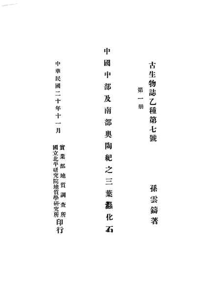 文件下载 | 名称:《中国中部及南部奥陶之三叶虫化石》电子版合集 | |