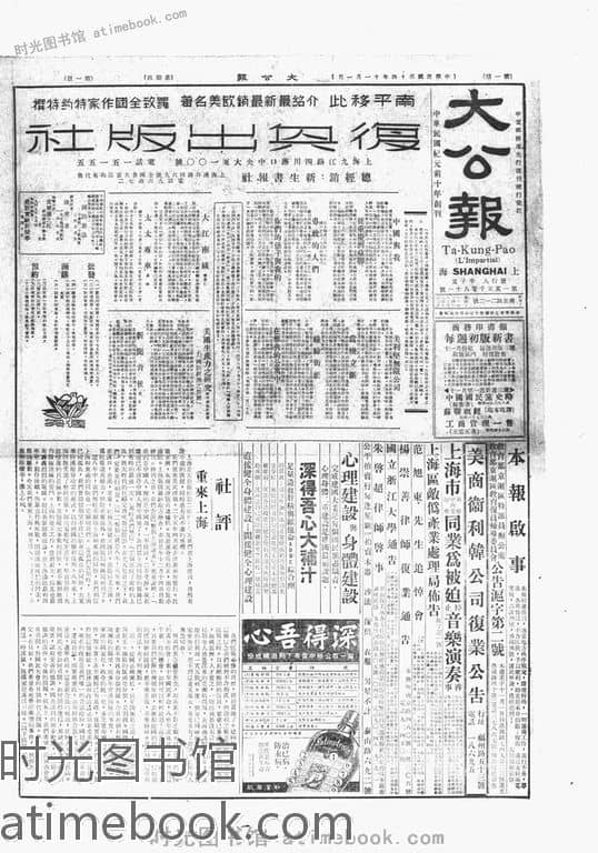 | 网盘路径:/时光图书馆珍藏系列/书籍文件/老报纸/天津/《大公报》(天津)1909-1949/《大公报》天津1945-1949年影印版合集.db | ||