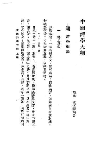 | 网盘路径:/时光图书馆珍藏系列/书籍文件/老图书/《中国诗学大纲》电子版合集.db | ||
