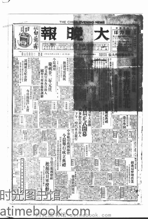 网盘路径:/时光图书馆珍藏系列/书籍文件/老报纸/上海/《大晚报》(上海)1932-1949/《大晚报》(上海)1933年合集.db