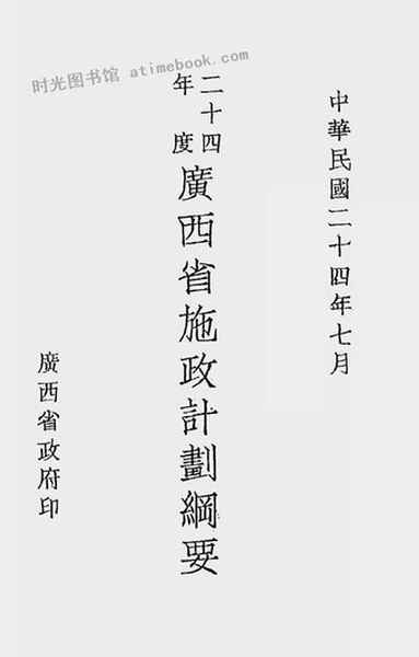 网盘路径:/时光图书馆珍藏系列/书籍文件/老图书/《二十四年度广西省施政计划纲要_中华民国二十四年七月》电子版合集.db