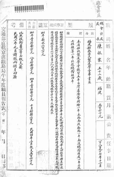 名称:《交通部直辖京汉铁路局半年度职员报告表》电子版合集
