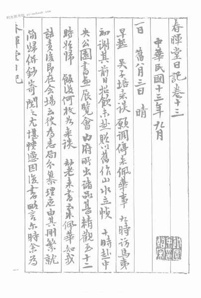 2-《春晖堂日记》民国十三年(1924)九月一日至民国十六年(1927)七月三十一日-13