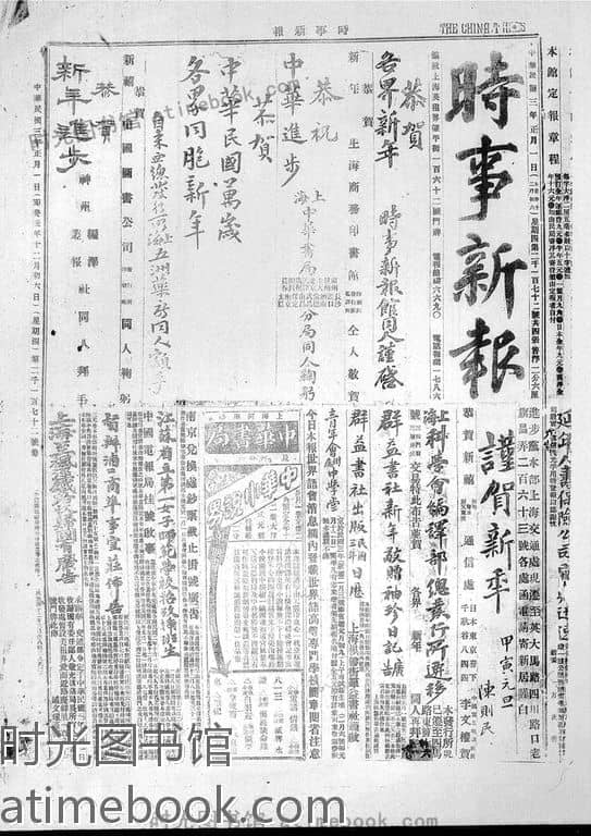 网盘路径:/时光图书馆珍藏系列/书籍文件/老报纸/上海/《时事新报》(上海)1911-1947/《时事新报》(上海)1914年合集.db
