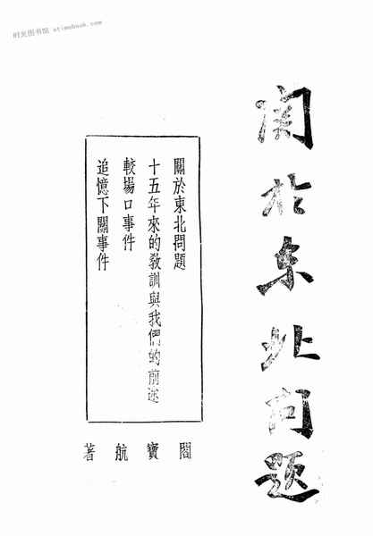 | 网盘路径:/时光图书馆珍藏系列/书籍文件/老图书/《关于东北问题》电子版合集.db | ||