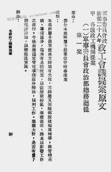 | 关键词:军事会议,干部培训,*训练团,政工机关,议案, | ||