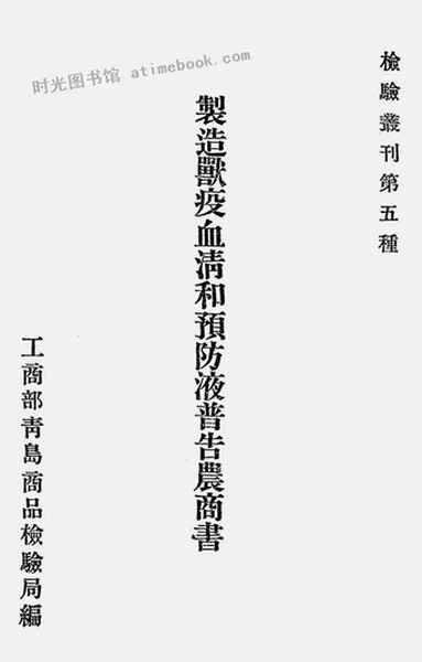 | 网盘路径:/时光图书馆珍藏系列/书籍文件/老图书/《制造兽疫血清和预防液普告农商书》电子版合集.db | ||