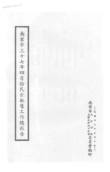 | 网盘路径:/时光图书馆珍藏系列/书籍文件/老图书/《南京市三十七年四月份民食配售工作总报告》电子版合集.db | ||