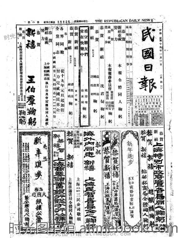 网盘路径:/时光图书馆珍藏系列/书籍文件/老报纸/上海/《民国日报》(上海)1916-1947/《民国日报》1930年合集.db