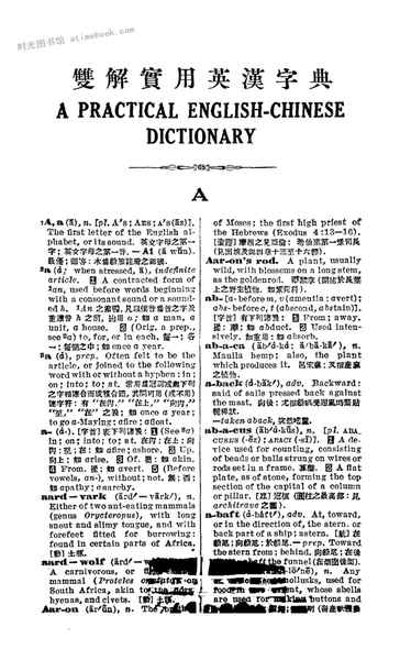 关键词:民国,历史,英汉字典,