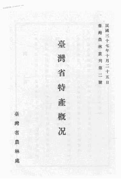 | 网盘路径:/时光图书馆珍藏系列/书籍文件/老图书/《台湾省特产概况》电子版合集.db | ||