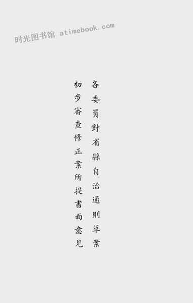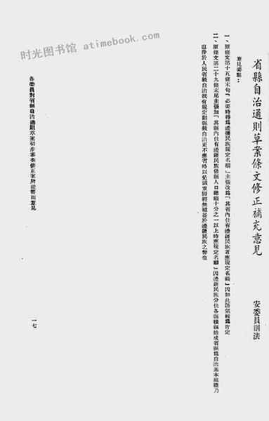 | 网盘路径:/时光图书馆珍藏系列/书籍文件/老图书/《各委员对省县自治通则草案初步审查修正案所提书面意见》电子版合集.db | ||