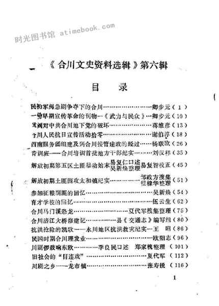 | 网盘路径:/时光图书馆珍藏系列/书籍文件/老图书/《合川文史资料选辑_第6辑》电子版合集.db | ||