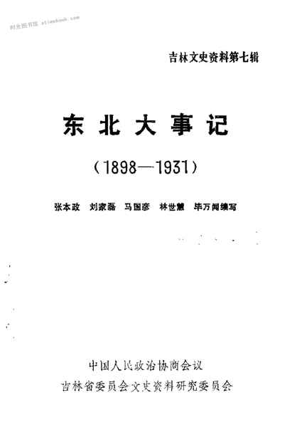 | 网盘路径:/时光图书馆珍藏系列/书籍文件/老图书/《吉林文史资料选辑_第7辑_(_东北大事记_1898-1931)》电子版合集.db | ||