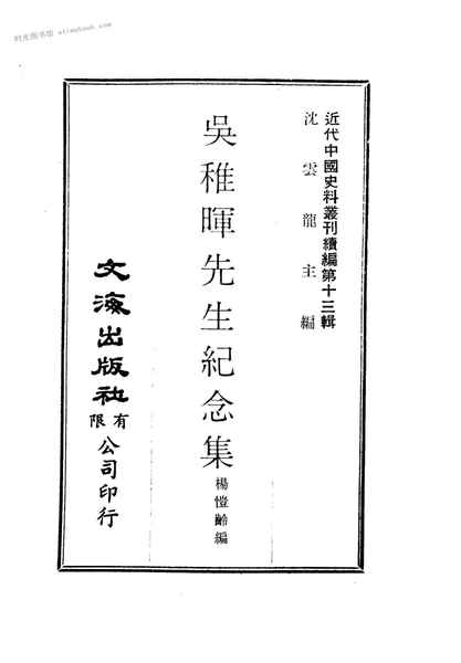 网盘路径:/时光图书馆珍藏系列/书籍文件/老图书/《吴稚晖先生纪念集》电子版合集.db