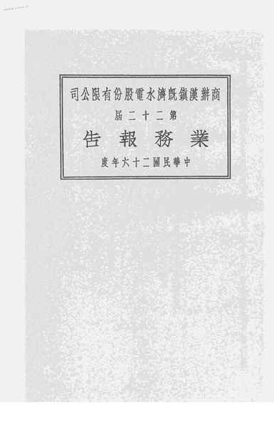 | 网盘路径:/时光图书馆珍藏系列/书籍文件/老图书/《商办汉镇既济水电股份有限公司中华民国二十六年度第二十二届业务报告》电子版合集.db | ||