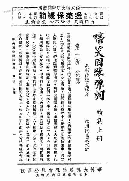 | 网盘路径:/时光图书馆珍藏系列/书籍文件/老图书/《啼笑姻缘弹词续集_上册》电子版合集.db | ||