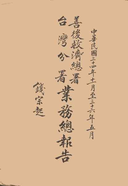 | 关键词:善后救济总署台湾分署业务总报告, | ||