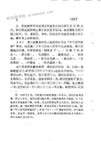 | 网盘路径:/时光图书馆珍藏系列/书籍文件/老图书/《嘉兴市文史资料_第2辑_嘉兴抗战八年记事》电子版合集.db | ||