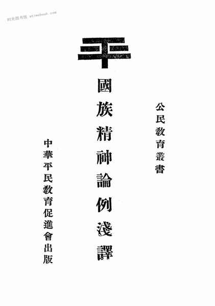 | 网盘路径:/时光图书馆珍藏系列/书籍文件/老图书/《国族精神论例浅译》电子版合集.db | ||
