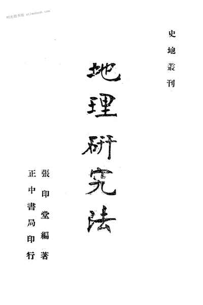 | 网盘路径:/时光图书馆珍藏系列/书籍文件/老图书/《地理研究法》电子版合集.db | ||