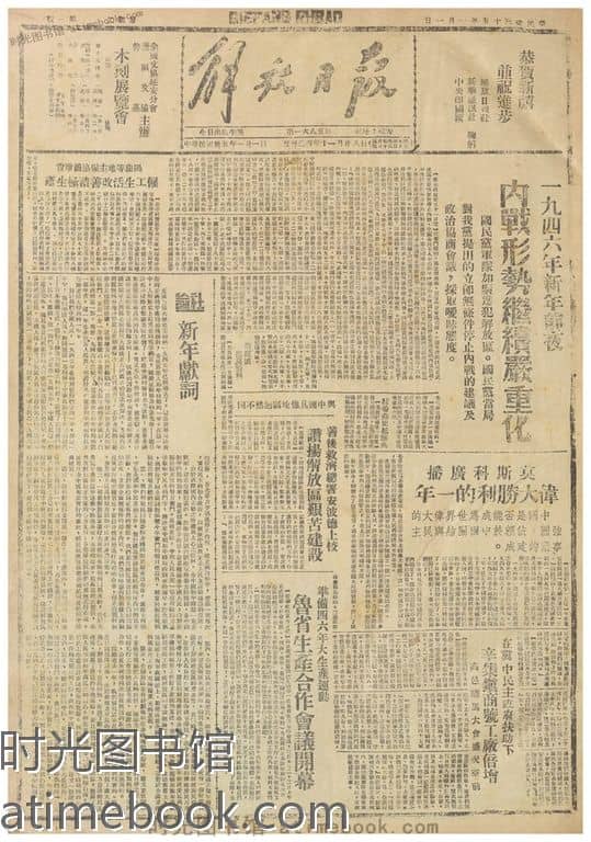 网盘路径:/时光图书馆珍藏系列/书籍文件/老报纸/陕西/《解放日报》(延安)1941-1947/《解放日报》1946年合集.db