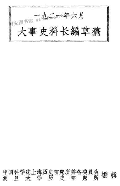 | 网盘路径:/时光图书馆珍藏系列/书籍文件/老图书/《大事史料长编草稿(一九二一年六月)》电子版合集.db | ||