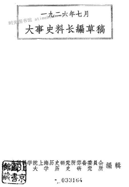 网盘路径:/时光图书馆珍藏系列/书籍文件/老图书/《大事史料长编草稿(一九二六年七月)》电子版合集.db