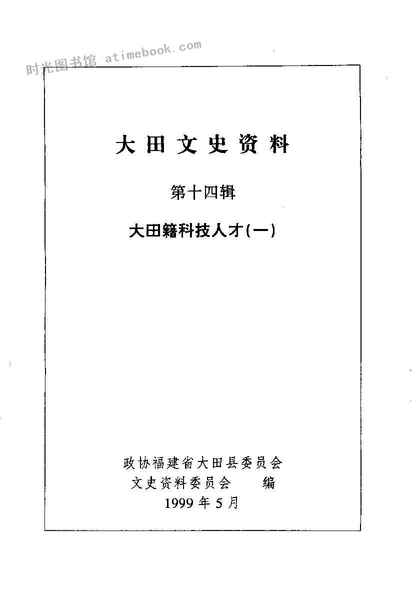 | 网盘路径:/时光图书馆珍藏系列/书籍文件/老图书/《大田文史资料_第14辑_大田籍科技人才(一)》电子版合集.db | ||