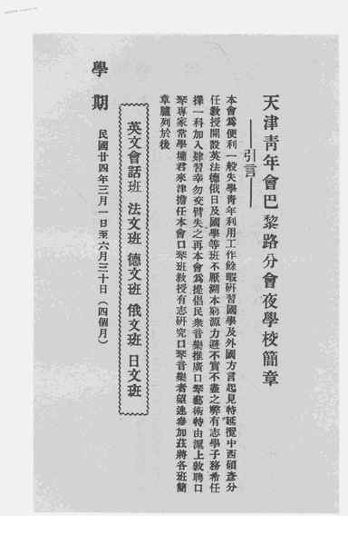 文件下载 | 名称:《天津青年会巴黎路分会夜学校简章》电子版合集 | |