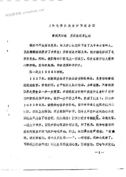 2-我和毛*先生的两次会面高闻天口述王宏昌记录整理
