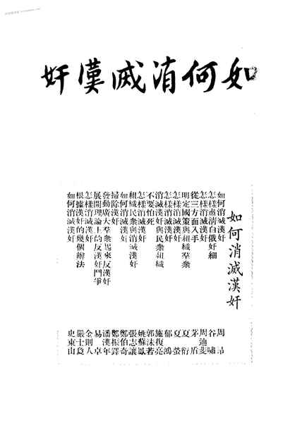 | 网盘路径:/时光图书馆珍藏系列/书籍文件/老图书/《如何消灭汉奸》电子版合集.db | ||