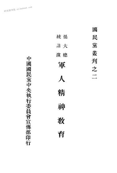 | 网盘路径:/时光图书馆珍藏系列/书籍文件/老图书/《孙大总统演讲——军人精神教育》电子版合集.db | ||