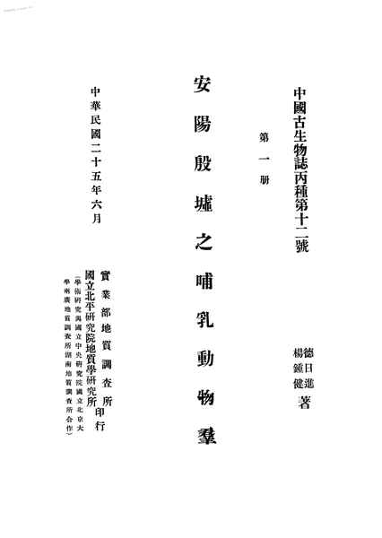老图书–《安阳殷墟之哺乳动物群》电子版合集