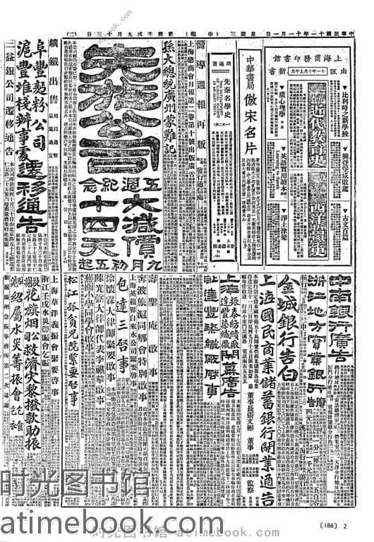 网盘路径:/时光图书馆珍藏系列/书籍文件/老报纸/上海/《申报》(上海)1882-1949/《申报》高清影印版1922年.db