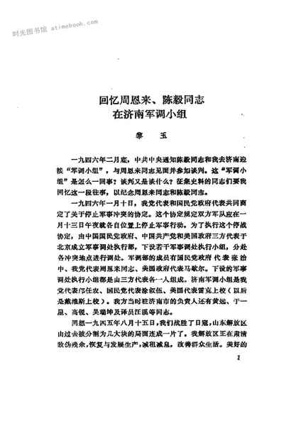 3-回忆周恩来、陈毅同志在济南军调小组黎玉(1)