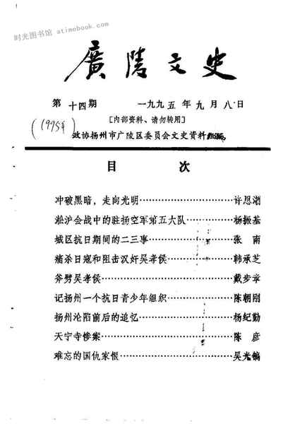 | 网盘路径:/时光图书馆珍藏系列/书籍文件/老图书/《广陵文史_第14期》电子版合集.db | ||