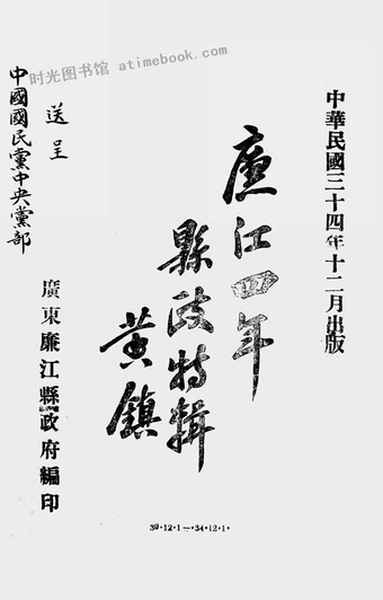 | 网盘路径:/时光图书馆珍藏系列/书籍文件/老图书/《廉江四年县政特辑》电子版合集.db | ||