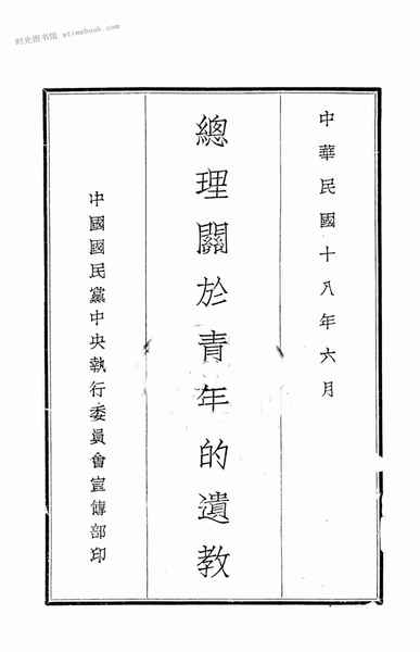 | 网盘路径:/时光图书馆珍藏系列/书籍文件/老图书/《总理关于青年的遗教》电子版合集.db | ||