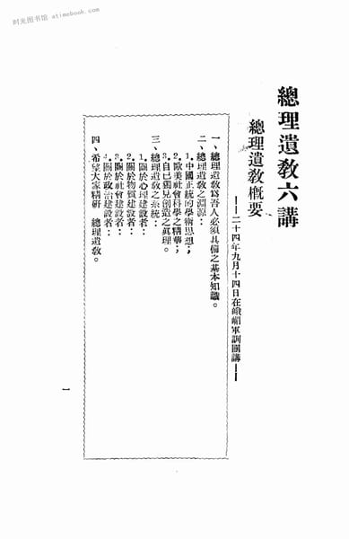 网盘路径:/时光图书馆珍藏系列/书籍文件/老图书/《总理遗教六讲》电子版合集.db