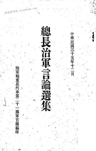 | 网盘路径:/时光图书馆珍藏系列/书籍文件/老图书/《总长治军言论选集》电子版合集.db | ||