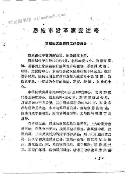 2-恩施市沿革演变述略市*文史资料工作委员会