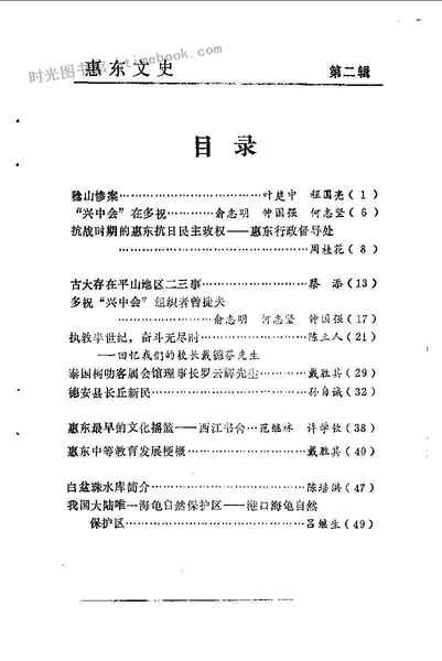 网盘路径:/时光图书馆珍藏系列/书籍文件/老图书/《惠东文史_第2辑》电子版合集.db